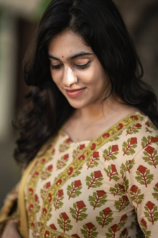 Gulnaar Hand Block Cotton Anarkali Suit Set