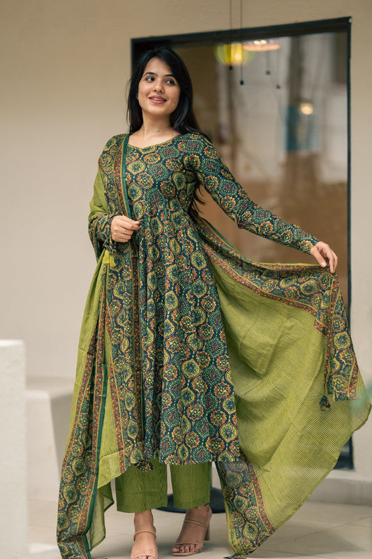 Falak Ajrakh Print Cotton Anarkali Suit Set