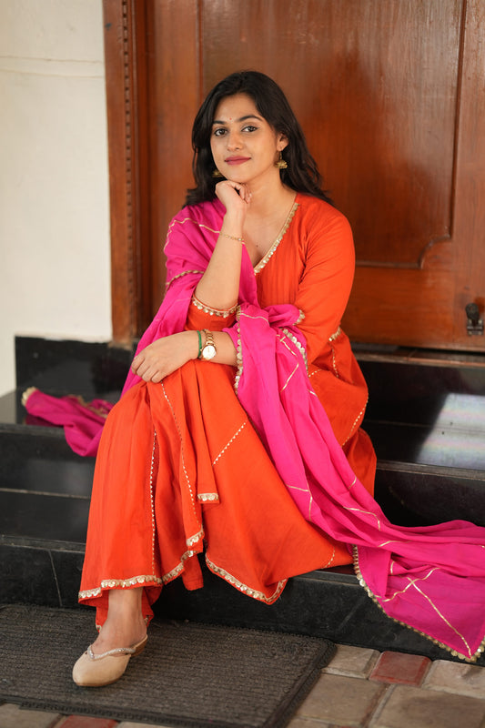 Gulnaar Hand Block Cotton Anarkali Suit Set